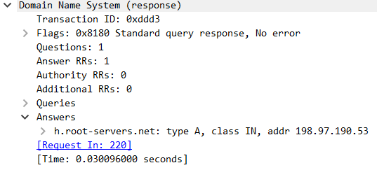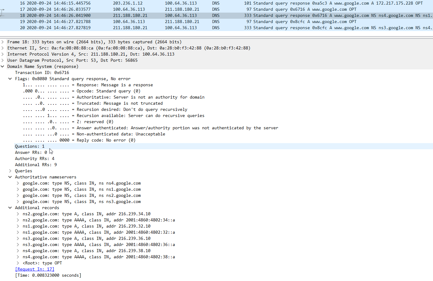 - In the response packet, Recursion Available is set. (The DNS can recurse)