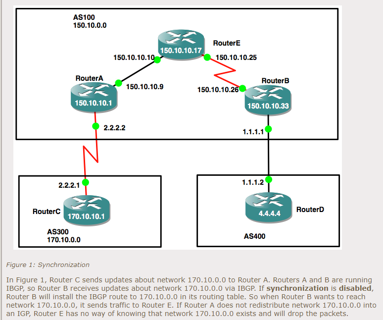 This is so strange. Because I did not "no synchorization" in BGP configuration, "110.0.0.4" should not be displayed. In this blog, the concept of the synchronization will be explained.