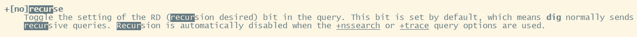 With "norecursion", "Recursion desired flag" is not set. This is the important factor to understand.