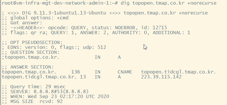 This is the other case, I will try dig to "8.8.8.8" which is google DNS server. Even if there are lots of DNS server behind 8.8.8.8.