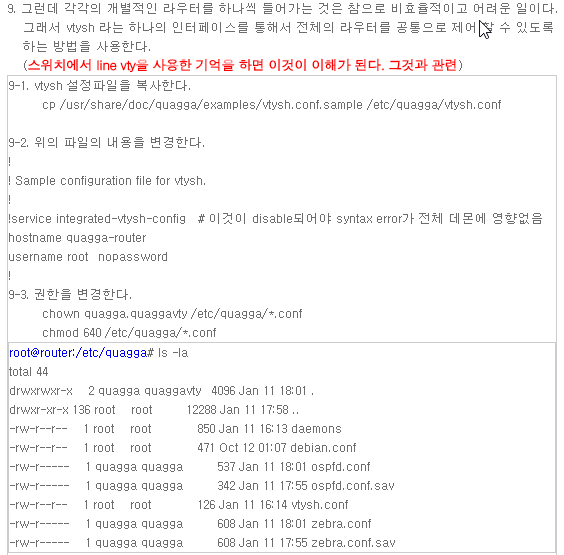 When I handle the Quagga at first time, There are something difficult to use it. It is "Intergrated-vtysh-config". I need each configuration file to load each routing protocol. This means that I have to edit each file.